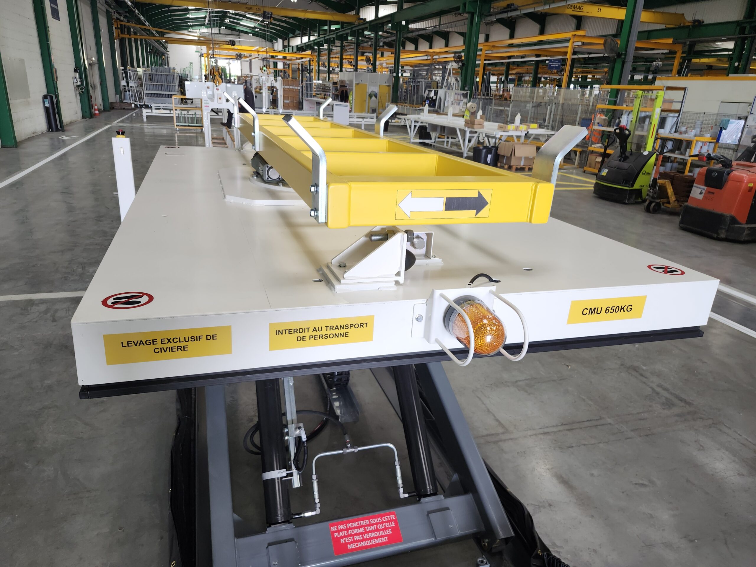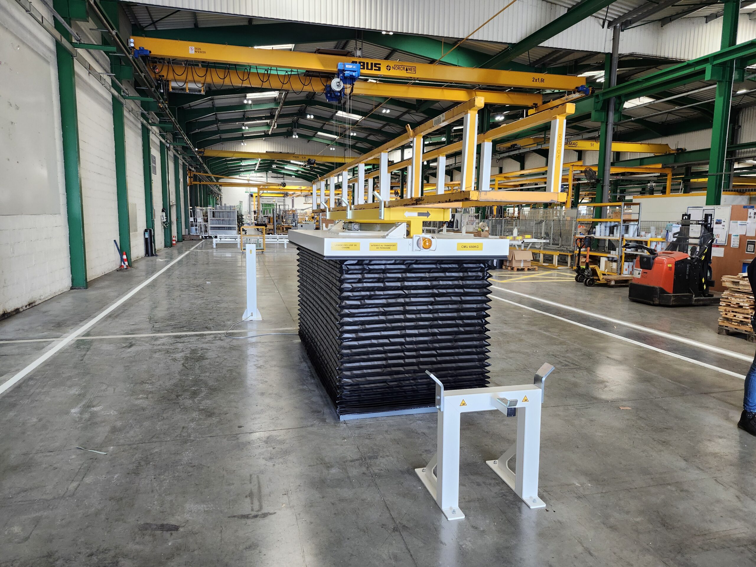 - Compatibilité avec tous types de charges (palettes, chariots de production, pièces techniques, modules spécifiques)